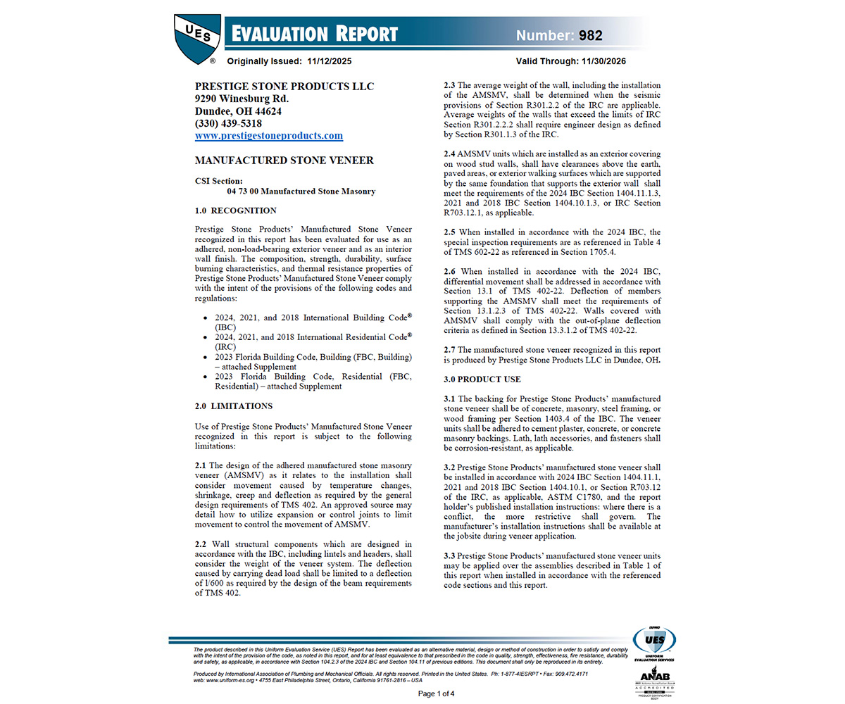 Stone Veneer Technical Data